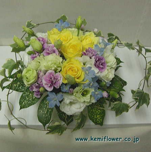 生花のアレンジです。バラはスプレーバラで仕上がっています。