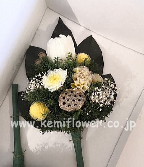 プリザーブトフラワーとアートフラワーによる対の仏花になります。