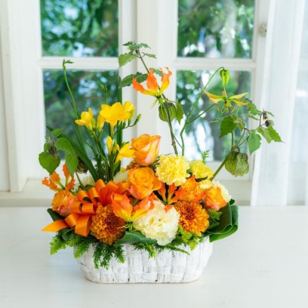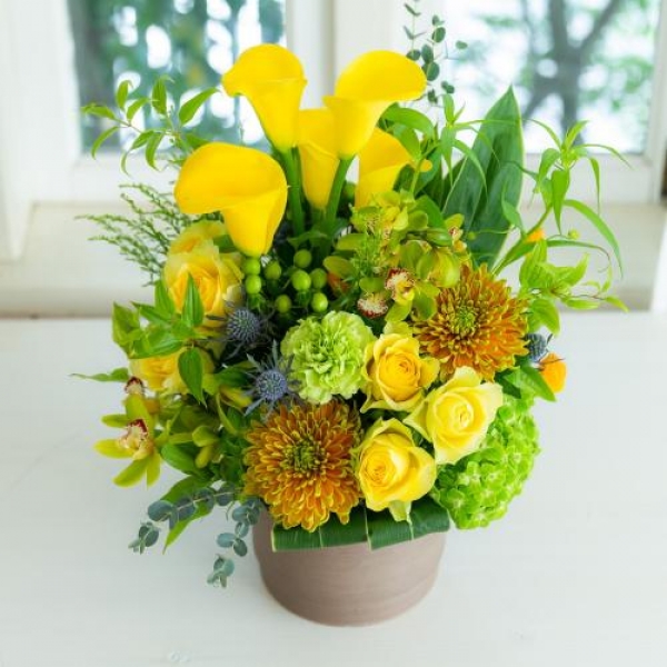 黄色・オレンジ系でまとめたアレンジメントです。